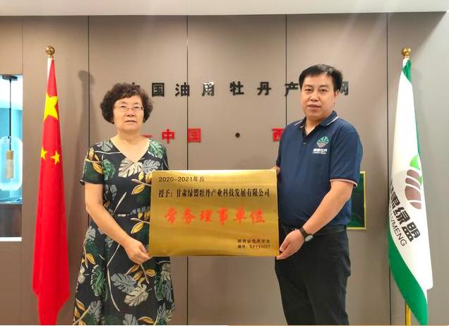陕西省营养学会授予甘肃绿盟牡丹产业科技发展有限公司“常务理事单位”